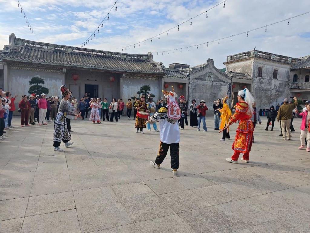 在这里,我还再会了一场动荡的潮汕非遗——英歌舞。画着脸谱的舞者执槌击饱读,腾踊间似梁山骁雄破阵而出,迂腐的傩舞血脉在铿锵节拍中回生。