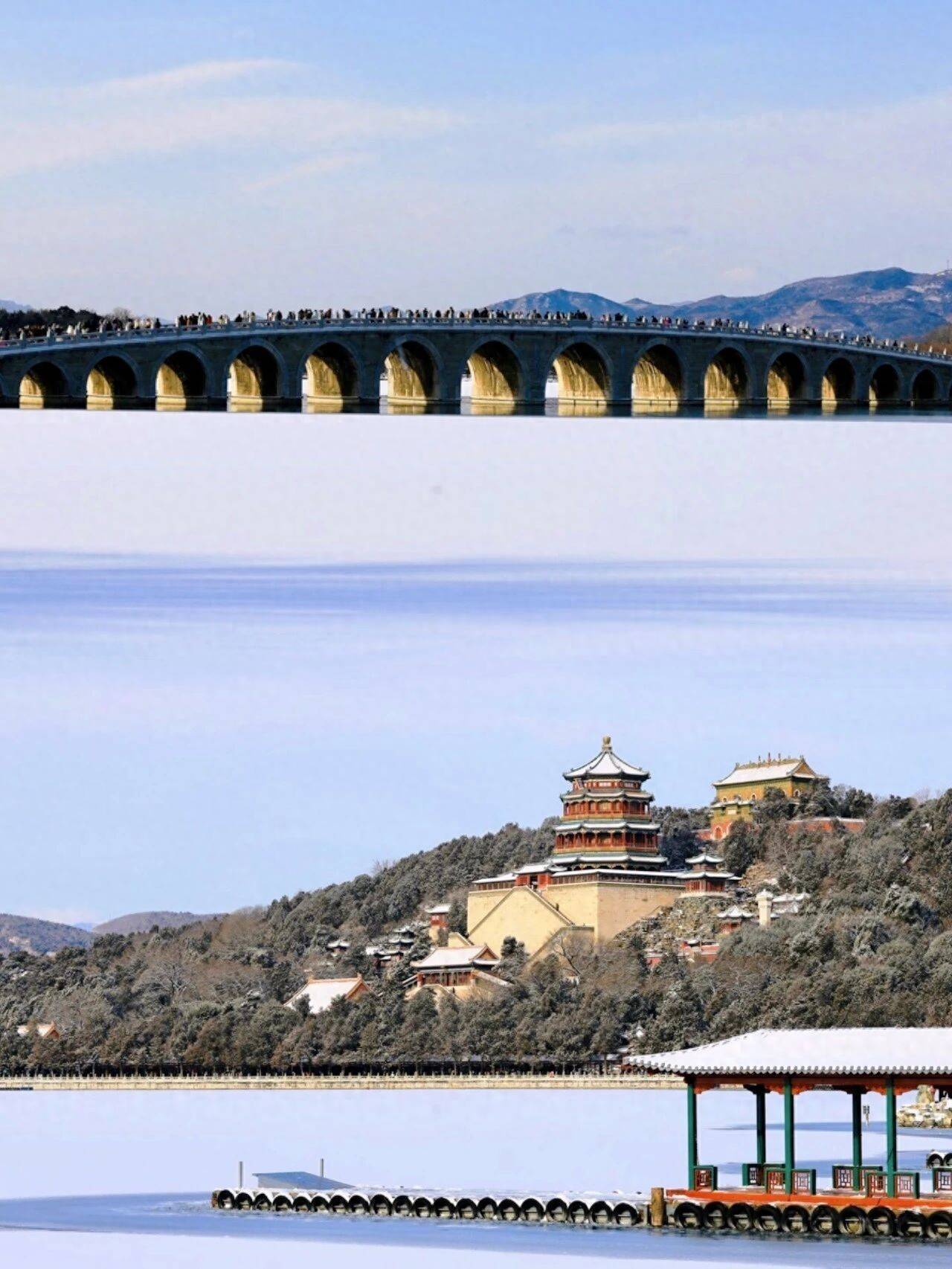 雪后的北京皇家园林颐和园呈现银装素裹的绝好意思画卷,昆明湖冰面如琉璃,古建设与雪景和会,宛如水墨画。(图/sipa图库)