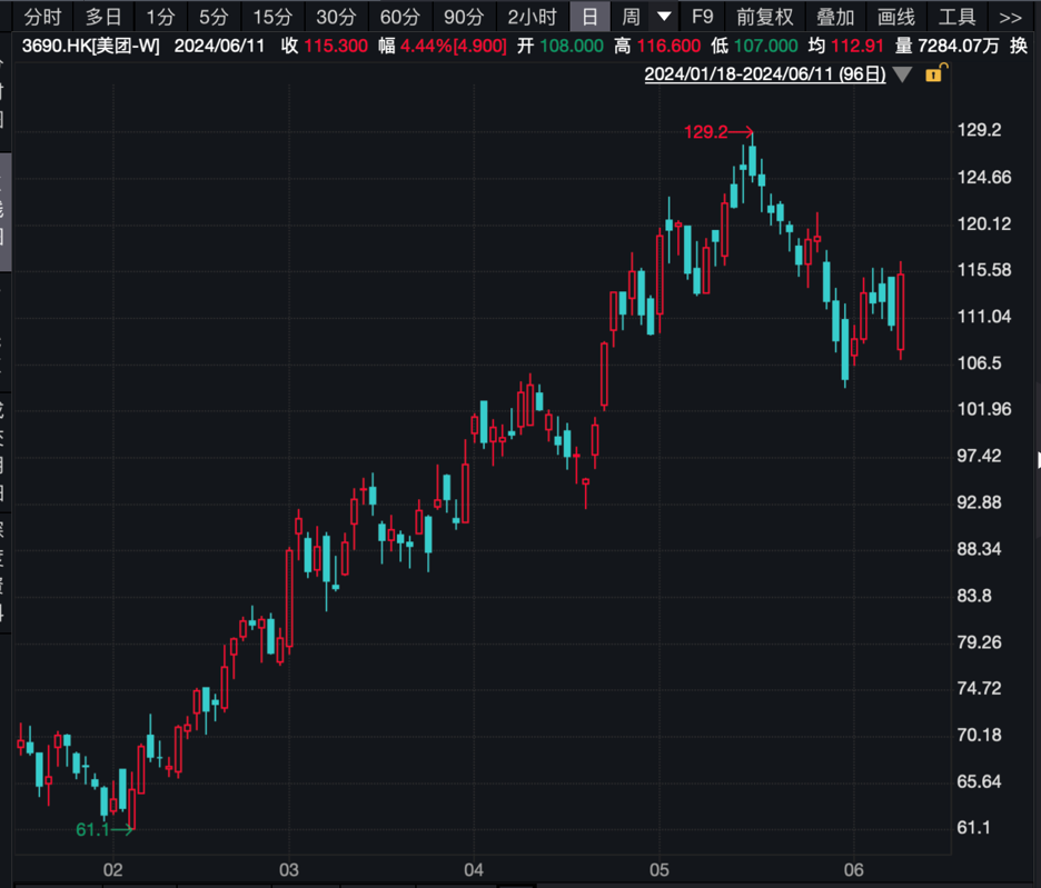6月11日,好意思团-W逆势高涨4.44%,在科技、互联网股票中进展隆起。