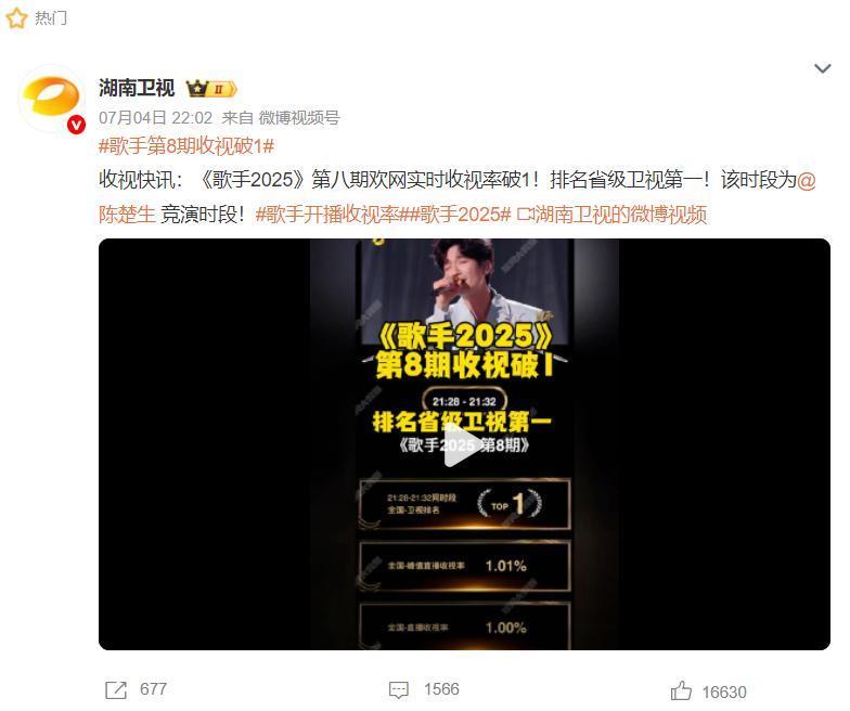 咱们不错发现,在每期节目中,陈楚生齐奋勉尝试新的立场,而演唱的每首歌曲齐收效出圈,成为各地文旅最爱的歌曲之一,不管陈楚生是第一个演唱,如故临了一个演唱,只有他演唱,同期段的收视率齐是最高的,本期平直打破1,《歌手2025》忍不住发出音信庆祝。