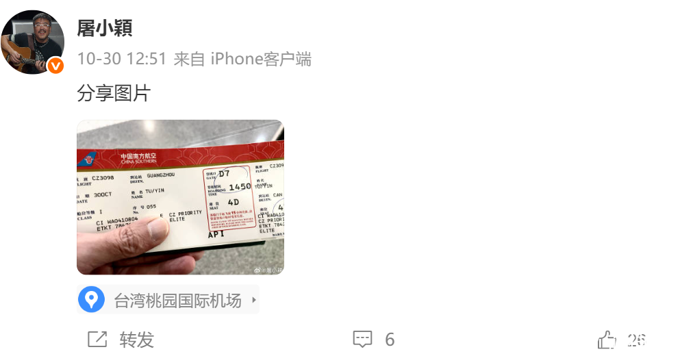 从屠颖个东谈主微博看,他相称活跃,积极跟粉丝共享糊口动态。10月30日他晒出我方从台北飞往广州的机票,并共享了中山顾忌堂外的景观,31日上昼,也便是离世前一天,屠颖还晒出了我方在广州货仓使用跑步机的相片,共享融会期间。没念念到,之后的融会会突发恐怕,令东谈主唏嘘。