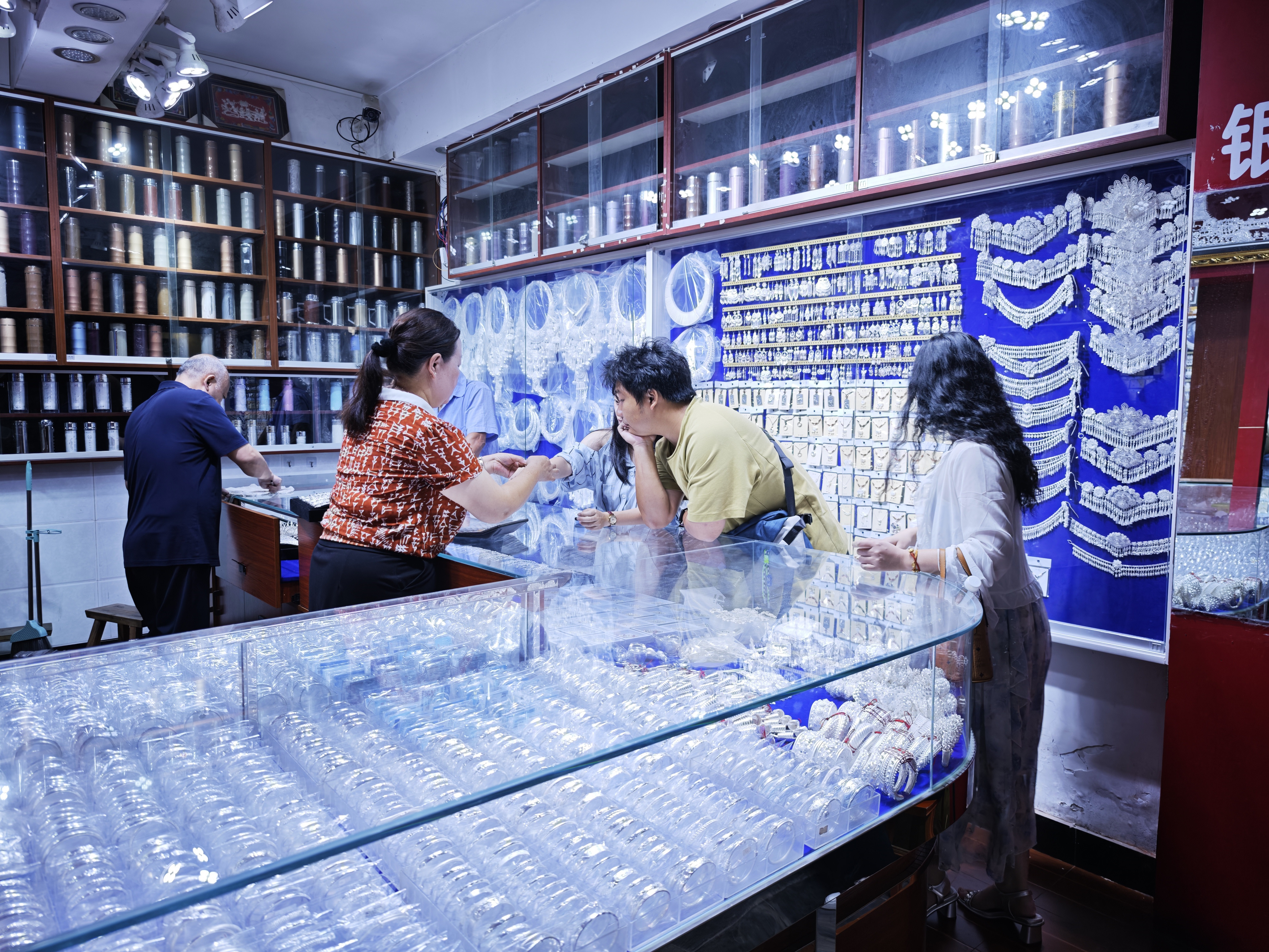 穿过凯里老城熙攘的街巷,韶山北路25号的银饰城便在车流东谈主声中渐次铺开。这座被誉为“苗岭银谷”的院落,藏着黔东南最注重的非遗密码,让千年银饰技巧在铁砧与锤声中生生束缚。刚踏入U型长廊,满室银辉便扑面而来,仿佛揉碎的蟾光洒进东谈主间,手镯的圆融、头冠的繁复、项链的小巧,在射灯卑劣转着冷冽而温润的光泽。