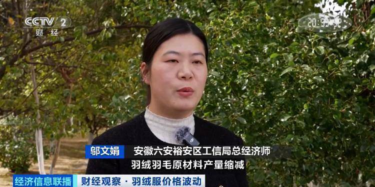 安徽六安裕安区工信局总经济师 邬文娟:家禽销量减少,羽绒羽毛原料产量缩减,加之寒潮影响,羽绒羽毛成品需求高涨,多重成分重叠导致羽绒价钱上浮。