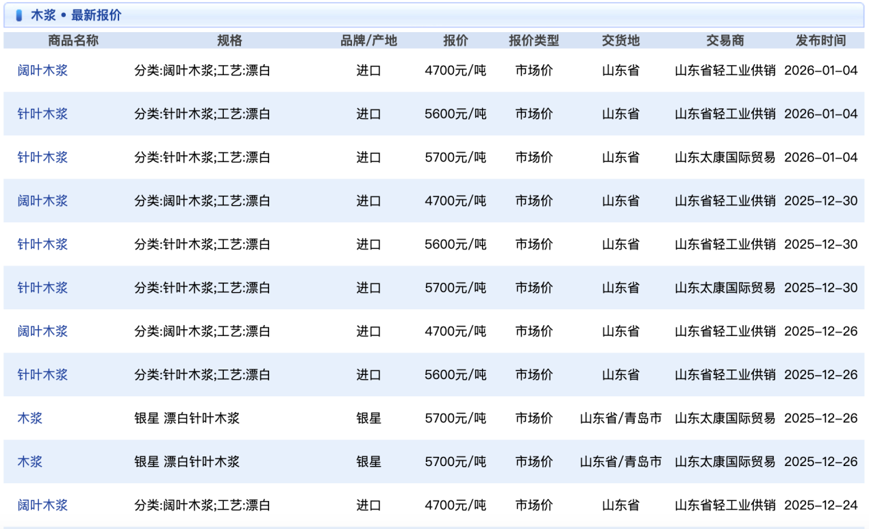 交易社2026年1月4日数据自大,木质素上游居品阔叶木浆和针叶木浆的入口价钱辞别为4700元/吨、5600元/吨,二者收支900元/吨。