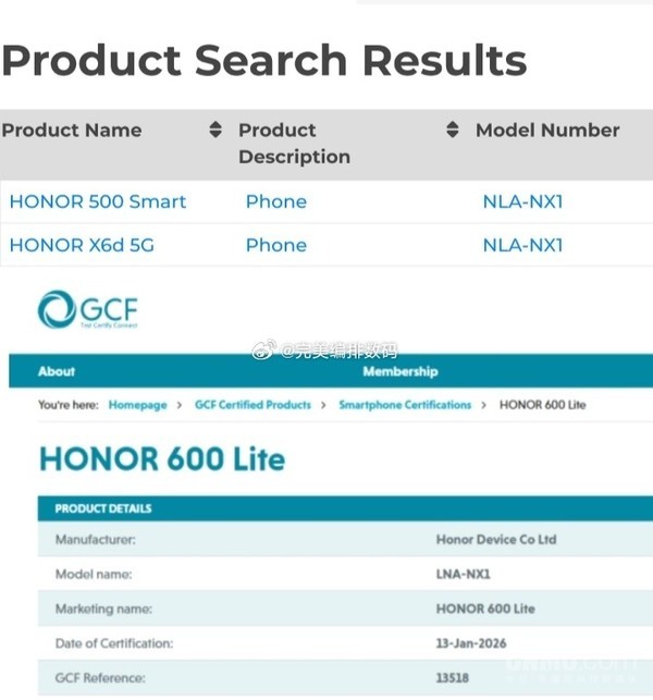 【CNMO科技音书】1月21日,有博主发文浮现世博体育app下载,荣耀的几款国外新机已通过议论认证。其中,荣耀600 lite对应的国内机型为荣耀X80i;荣耀X6d 5G/500 Smart对应的则是国内畅玩60A/play 10A。