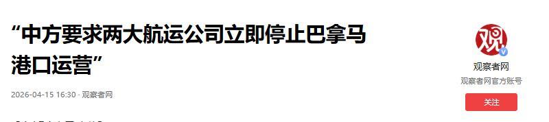 “中方条目两大航运公司立即住手巴拿马口岸运营”——2026-04-15 16:30不雅察者网欧洲杯体育